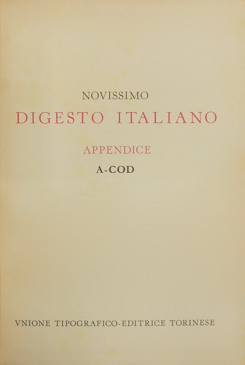 Novissimo Digesto Italiano. Diretto da Antonio Azara e Ernesto Eula. Appendice I: A-COD