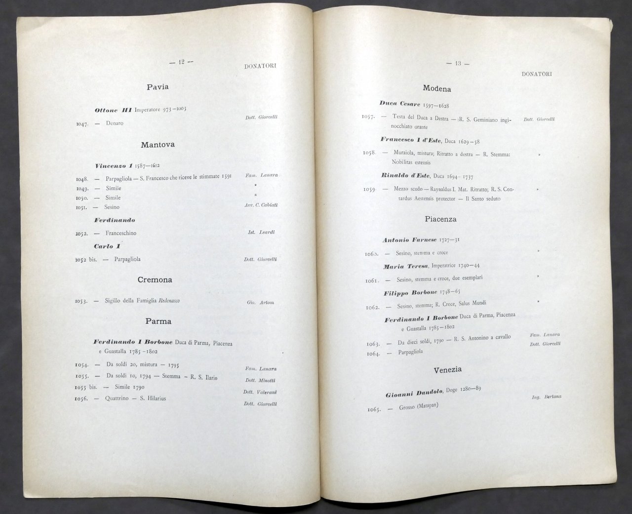 Numismatica Monete e medaglie dell'Istituto Leardi di Casale cassificate per stati secondo l'ordine cronologico, con supplemento - 1^ ed. 1898 / 1899 Pag. 52; 43. Copertina morbida - Testo in italiano. Condizioni molto buone, salvo piccoli segni del tempo.