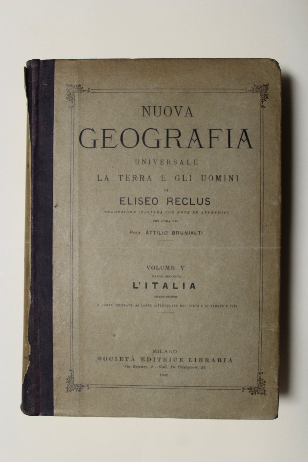 Nuova geografia universale. La terra e gli uomini di Eliseo Reclus<BR>traduzione italiana con note ed appendici per cura del prof. Attilio Brunialti. Vol. V Parte seconda l'Italia contenente 3 carte colorate 99 carte intercalate nel testo e 93 vedut | Libri antichi e moderni | Reclus Eliseo.