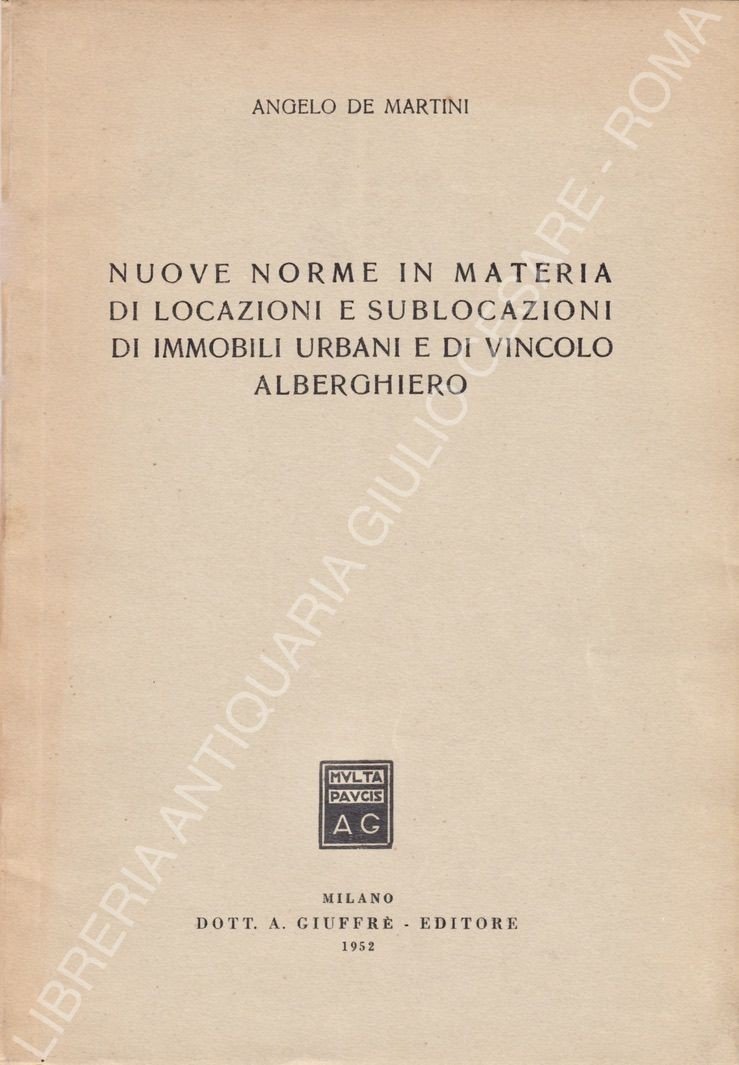 Nuove norme in materia di locazioni e sublocazioni di immobili urbani e di vincolo alberghiero | Libri antichi e moderni | De Martini Angelo