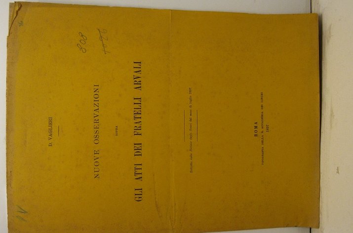 Nuove osservazioni sopra gli Atti dei Fratelli Arvali. Estratto dalle Notizie degli Scavi del mese di luglio 1897 | Libri antichi e moderni | Vaglieri D.