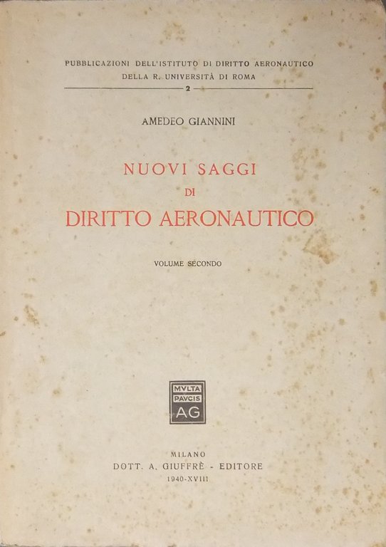 Nuovi saggi di diritto aeronautico. Vol. II | Libri antichi e moderni | Giannini Amedeo (1886-1960)