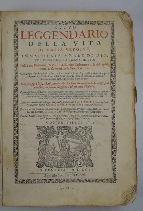 Nuovo leggendario della vita di Maria Vergine immacolata madre di Dio et signor nostro Giesu Christo… delli santi patriarchi, & profeti dell'Antico Testamento, & delli quali si tratta, & fa mentione la Sacra Scrittura… | Libri antichi e moderni | Villegas Selvago Alonso.