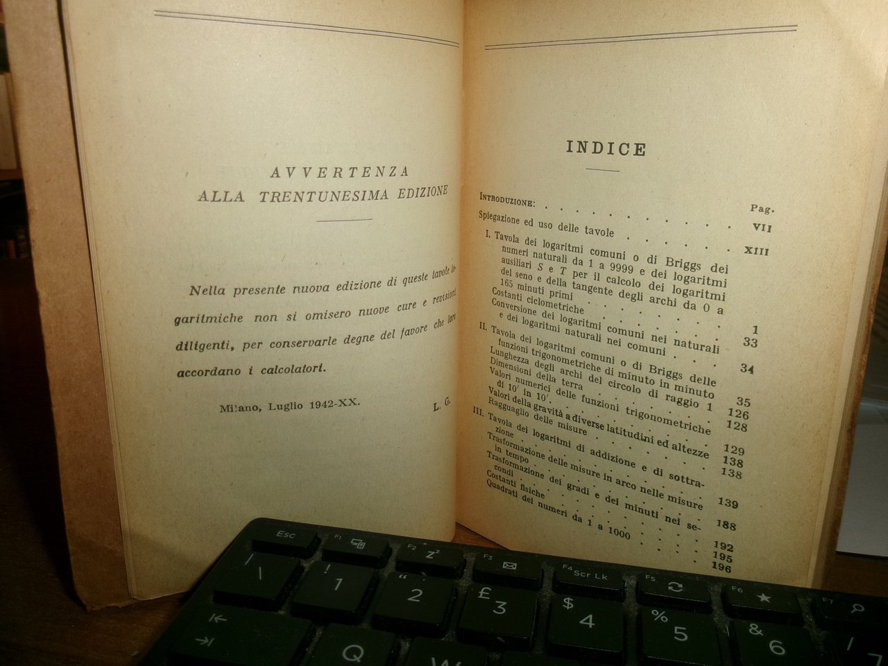 O. MULLER - M. RAJNA. Tavole di LOGARITMI con cinque decimali - HOEPLI, 1943 | Libri antichi e moderni |