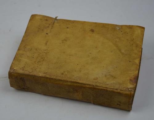 Cm. 16, pp. (32) 160, 315 (3). Testo interamente in rosso e nero. Fregio centrale al frontespizio. Legatura coeva in piena pergamena semirigida con laccetti di chiusura mutili. Cerniere internamente un po' deboli, peraltro esemplare genuino e ben conservato. Grazioso octavarium romanum.