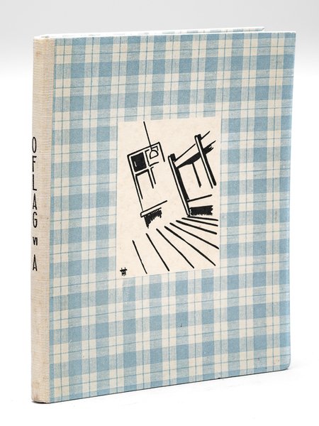 1 vol. in-8 reliure demi-toile blanche, Aux dépens des O.P.G., Achevé d'imprimer le 15 juillet 1941 à Wuppertal-Elberfeld, 77 pp. Très intéressant exemplaire, non numéroté mais contenant un dessin original signé de Morel-Fatio (variante du dessin illustrant la page 14), sur un feuillet portant le cachet de l'Oflag et également signé de 11 autres prisonniers, et portant la mention "En captivité, Camp de Soest (Westphalie) ce 20 septembre 1940. On y découvre également 2 feuillets au cachet de l'Oflag (liste des livres du lieutenant André Sauvageot, 3610 Bloc III chambre 58 et adresse du lieutenant), 2 laisser-passers pour Maurice Hurvoy, daté de mars 1943, et un programme du "Théâtre libre de Soest", mâtinée du 8 septembre 1940. La justification signale 50 exemplaires numérotés contenant un dessin original de Morel-Fatio (notre exemplaire n'est pas numéroté).On sait que l'écrivain Robert Brasillach fut détenu dans ce même camp de juin 1940 à mars 1940, où il rédigea son roman inachevé "Les Captifs".
