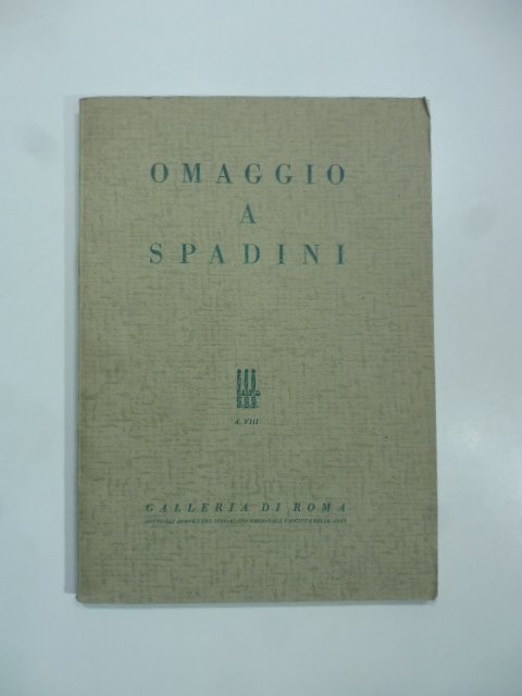 In 8 (cm 15 x 21), pp. 54 + (4). Brossura editoriale. Pubblicazione edita in occasione della mostra postuma delle opere di Armando Spadini organizzata dalla Galleria di Roma nel 1930. Edizione di 500 copie numerate. Con saggi di: Giuseppe Ungaretti, Vincenzo Cardarelli, Corrado Pavolini, Pier Maria Bardi, Cipriano Efisio Oppo, Emilio Cecchi, Sandro Volta, Antonio Baldini, Giorgio De Chirico.