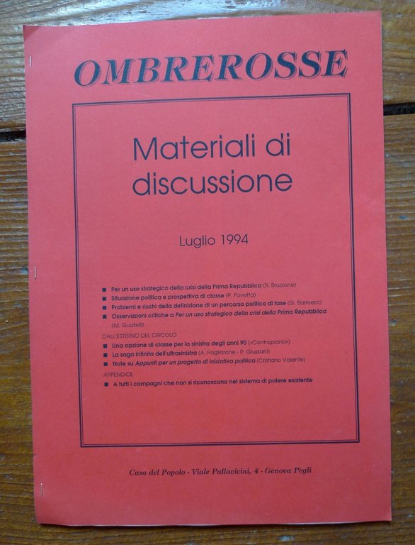 OMBRE ROSSE.MATERIALI DI DISCUSSIONE,1994.Casa del Popolo,Genova[I Repubblica | Libri antichi e moderni |