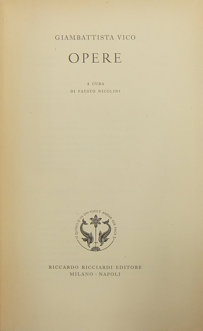 Opere. A cura di Fausto Nicolini | Libri antichi e moderni | Vico Giambattista (1668-1744)