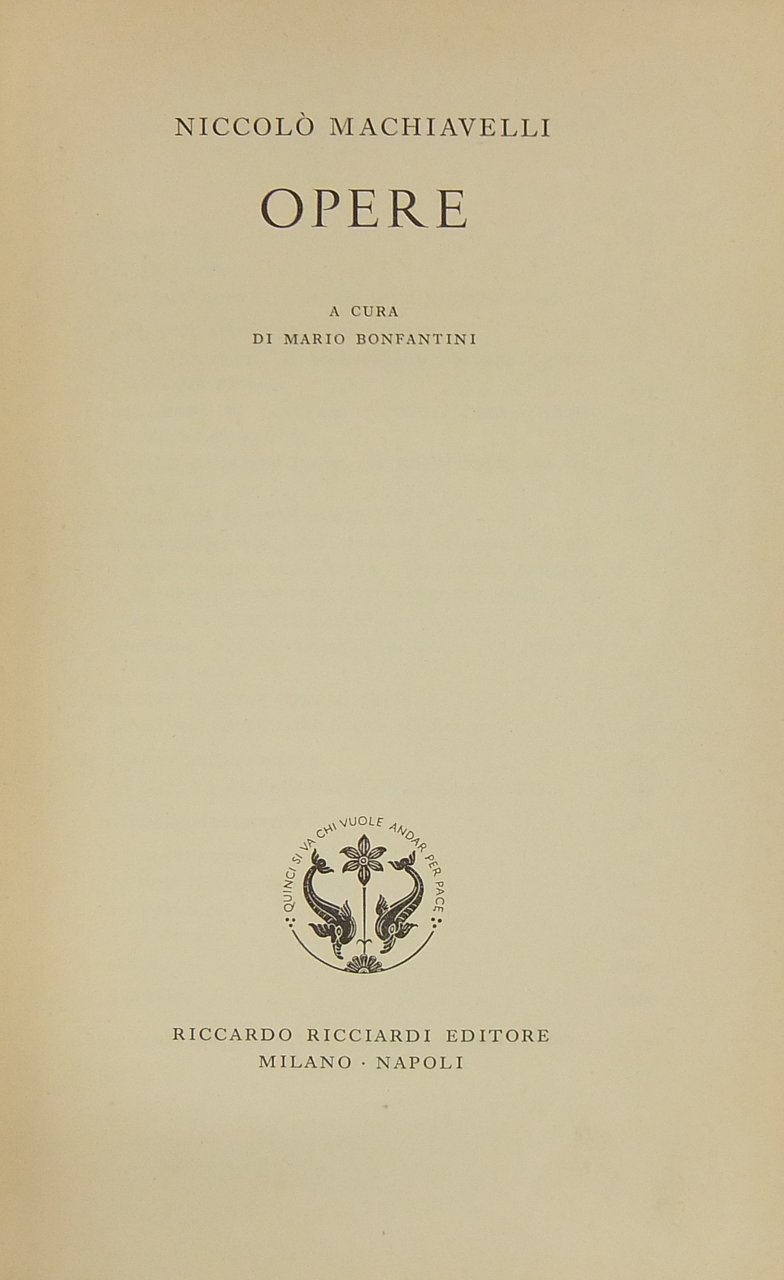Opere. A cura di Mario Bonfantini | Libri antichi e moderni | Machiavelli Niccolò (1469-1527)