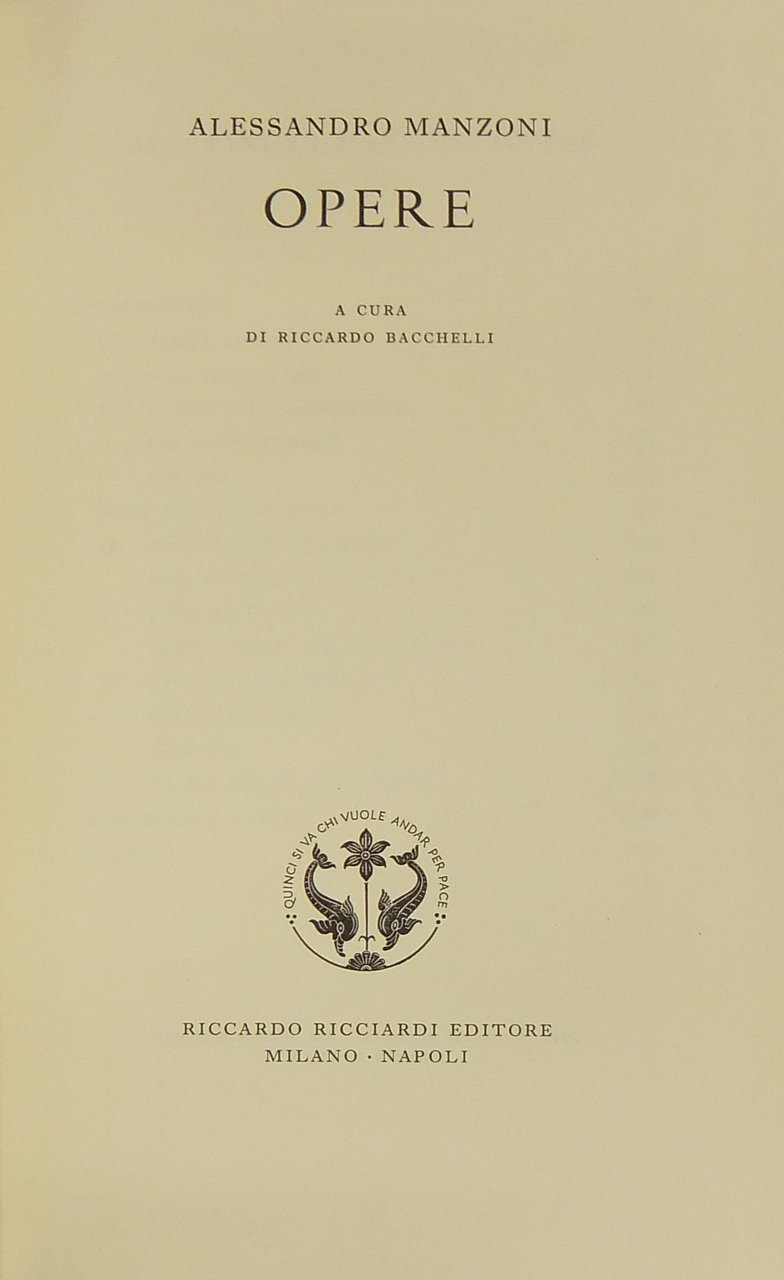Opere. A cura di Riccardo Bacchelli | Libri antichi e moderni | Manzoni Alessandro (1785-1873)