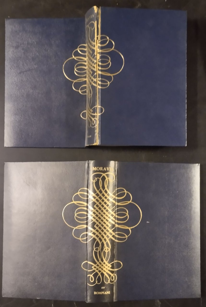 OPERE di ALBERTO MORAVIA 2 volumi. Volume 1:ç Gli indifferenti Le ambizioni sbagliate, Volume 2: Tutti i racconti romani. Bompiani Editore, 1967. 909 + 1071 pagine. Copertine editoriali in tutta finta pelle e cofanetto in cartoncino. Stato di conservazione: molto buono (pagine normalmente ingiallite, piccole mancanze al dorso del 1 volume) Libro usato saggistica