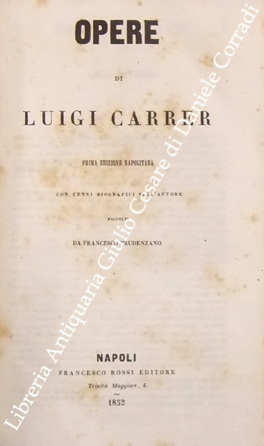 Opere. Prima edizione napolitana con cenni biografici sull'autore raccolti da Francesco Prudenzano | Libri antichi e moderni | Carrer Luigi