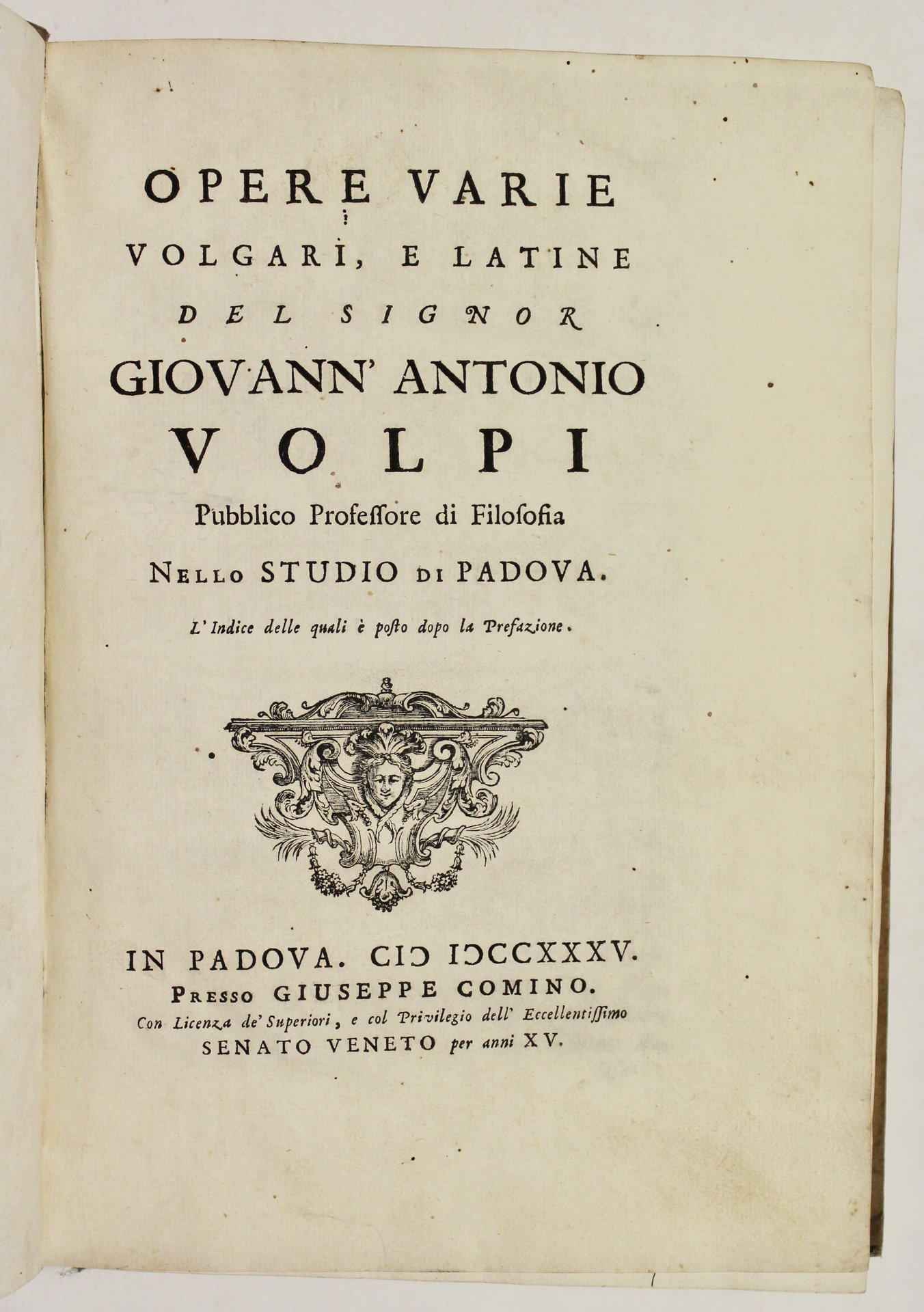 Opere varie volgari e latine. | Libri antichi e moderni | Volpi Giovanni Antonio