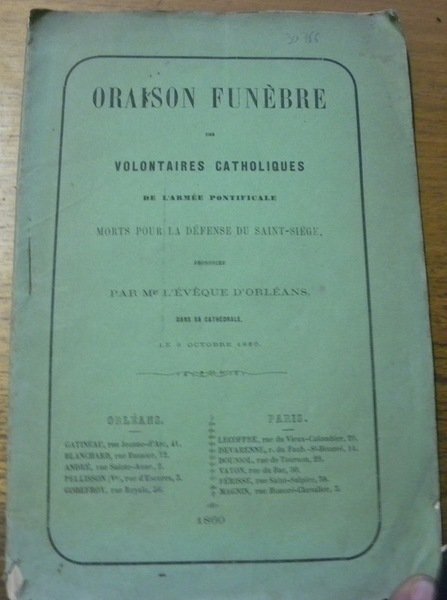 Oraison funèbre des volontaires catholiques de l’Armée Pontificale morts pour la défense du Saint-Siège. Prononcée par Mgr. l’Evêque d’Oléans. | Libri antichi e moderni |