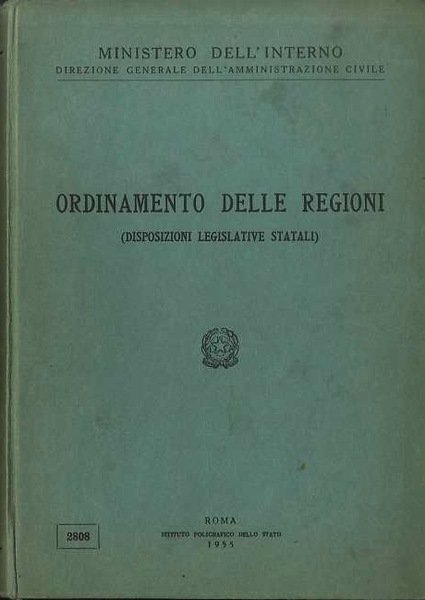 Ordinamento delle regioni: disposizioni legislative statali. | Libri antichi e moderni |