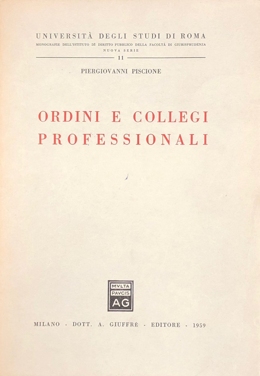 Ordini e collegi professionali | Libri antichi e moderni | Piscione Piergiovanni