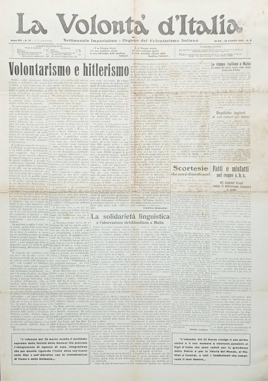 Organo Volontarismo - La Volontà d'Italia N. 12 - Lingua italiana a Malta - 1932