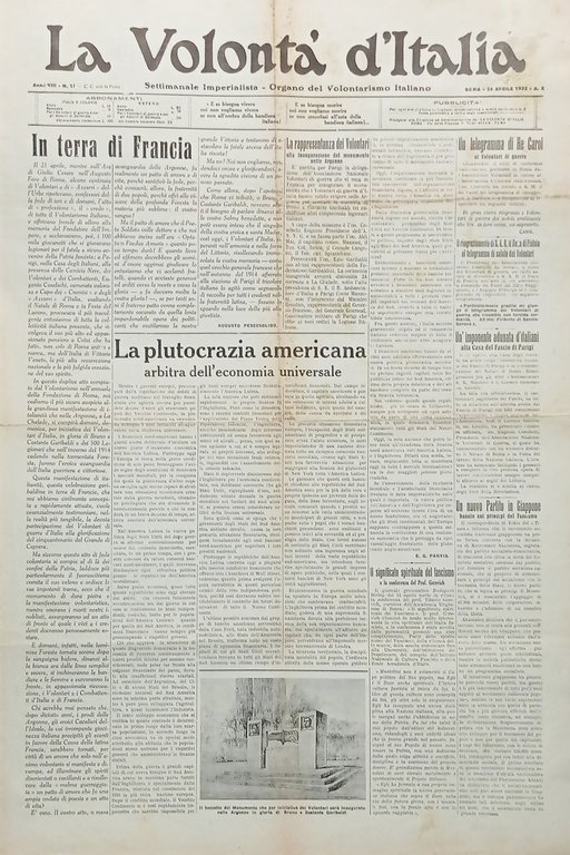 Organo Volontarismo Italiano - La Volontà d'Italia N.17 In terra di Francia 1932