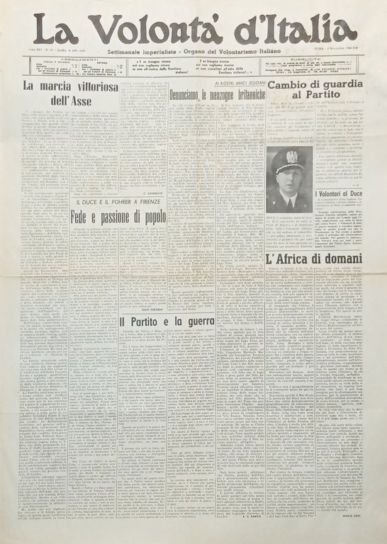 Organo Volontarismo Italiano - La Volontà d'Italia N. 38 Marcia vittoriosa 1940 | Libri antichi e moderni |