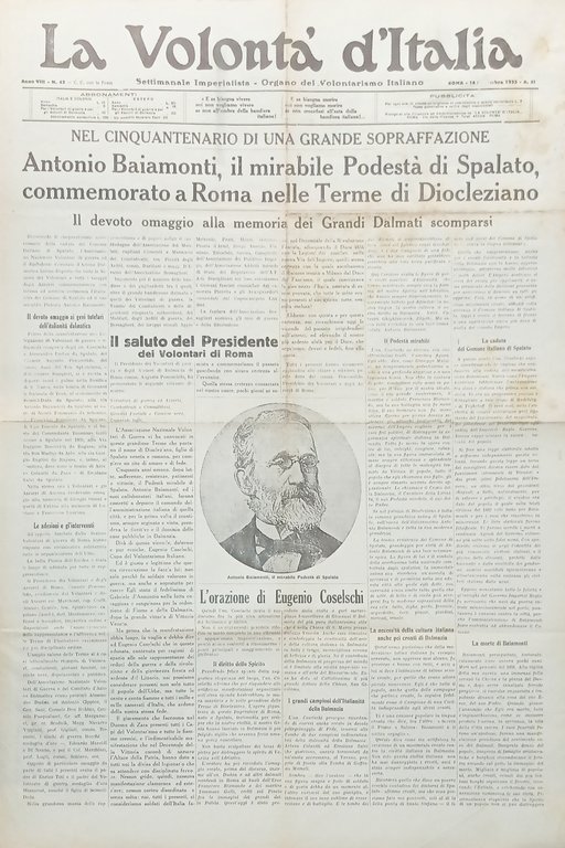 Organo Volontarismo Italiano - La Volontà d'Italia N. 45 Antonio Baiamonti 1932