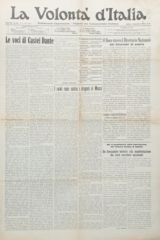 Organo Volontarismo Italiano La Volontà d'Italia N. 44 Voci di Castel Dante 1932 | Libri antichi e moderni |