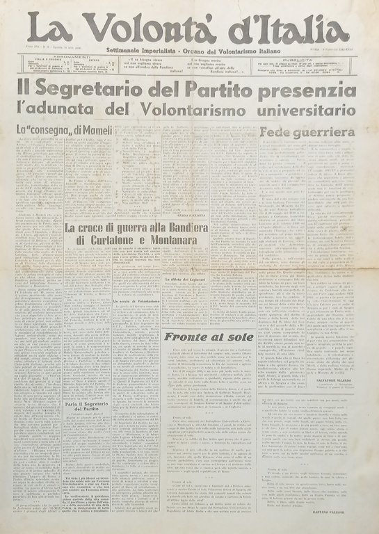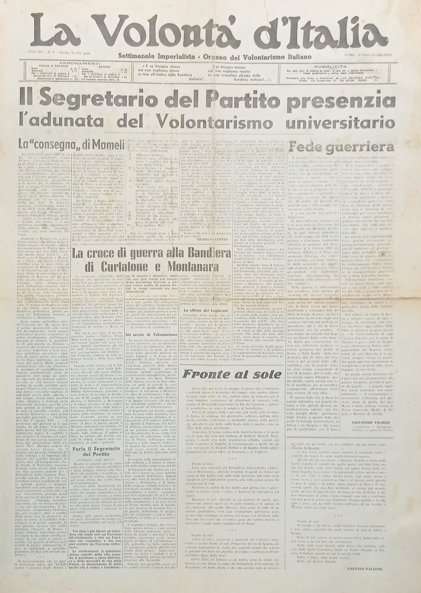 Organo Volontarismo Italiano La Volontà d'Italia N.6 Segretario del Partito 1940