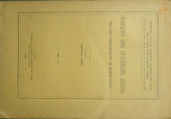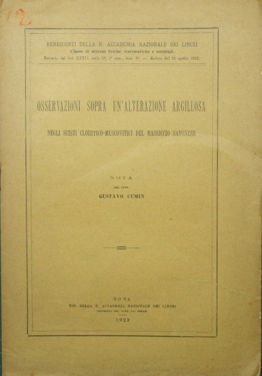 Osservazioni sopra un'alterazione argillosa negli scisti cloritico-muscovitici del Massiccio savonese | Libri antichi e moderni | Cumin Gustavo