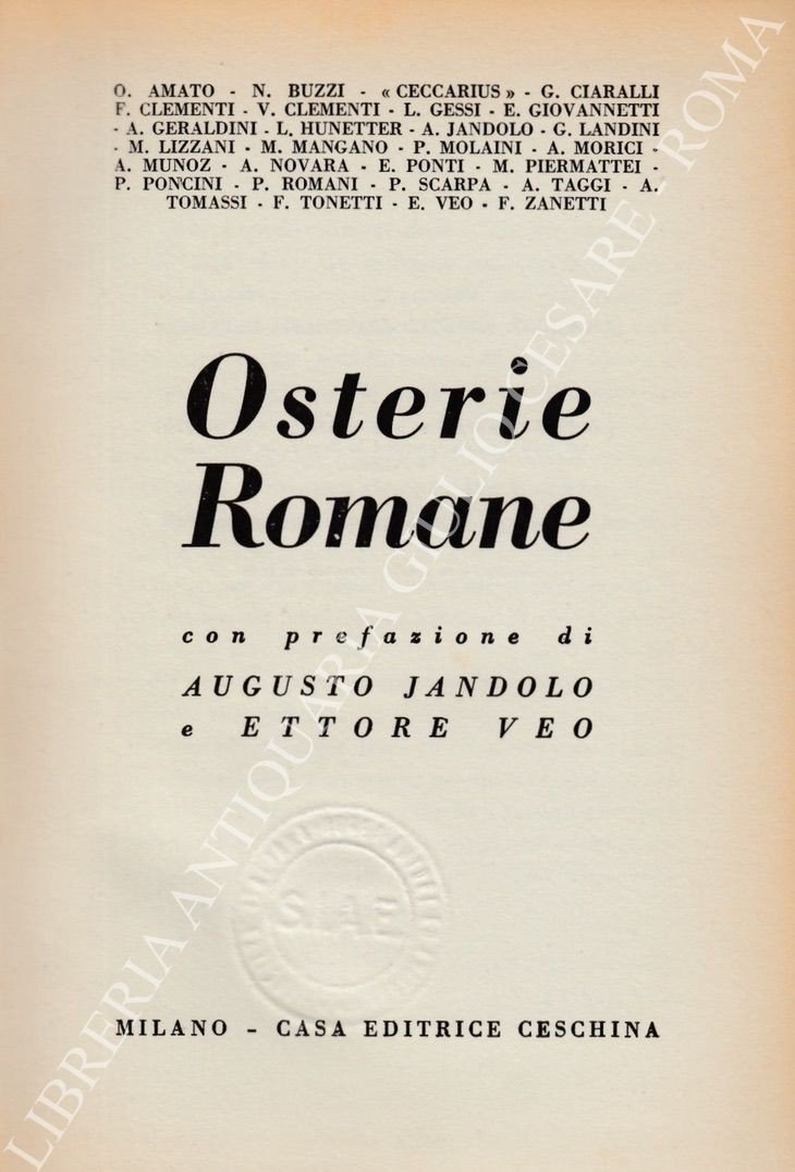 Osterie romane. Con prefazione di Augusto Jandolo e Ettore Veo