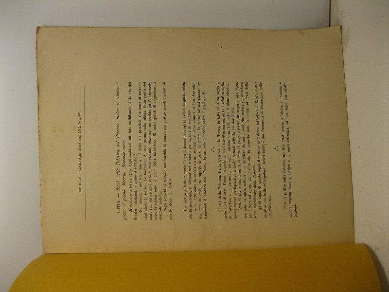 Ostia. Scavi nella Palestra, nel Piazzale dietro il Teatro e presso il piccolo Mercato. Ricerche varie. | Libri antichi e moderni | Vaglieri D.