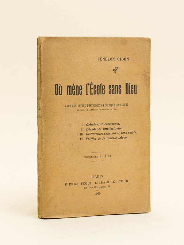 Où mène l'école sans Dieu. I . Criminalité croissante ; II : Décadence intellectuelle ; III : Instituteurs sans foi ni patrie ; IV : Faillite de la morale laïque. | Libri antichi e moderni | Gibon, Fénelon