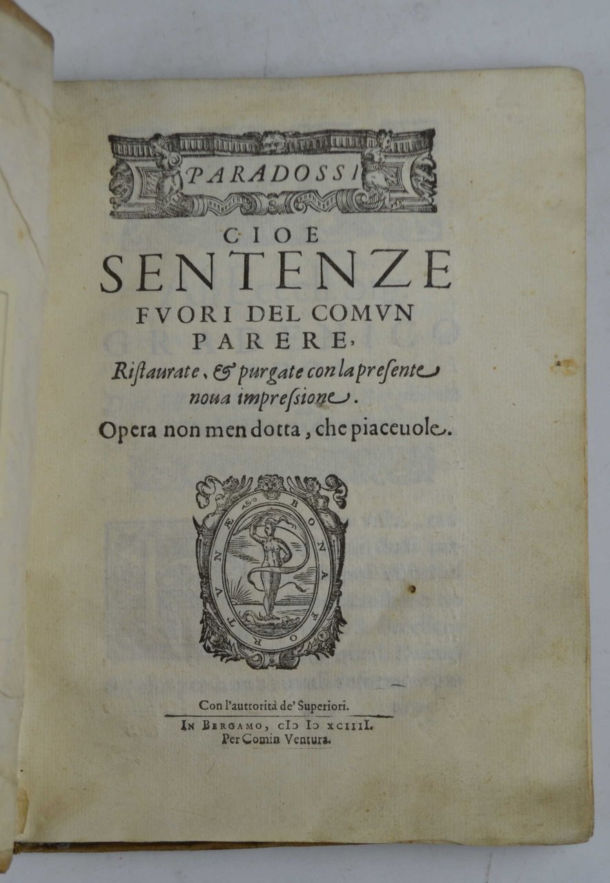 Paradossi cioe sentenze fuori del comun parere, ristaurate, & purgate con la presente nova impressione. Opera non men dotta, che piacevole. | Libri antichi e moderni | Lando Ortensio.