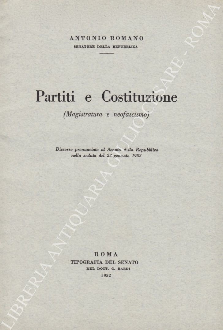 Partiti e Costituzione (Magistratura e neofascismo). Discorso pronunciato al Senato della Repubblica nella seduta del 22 gennaio 1952 | Libri antichi e moderni | Romano Antonio