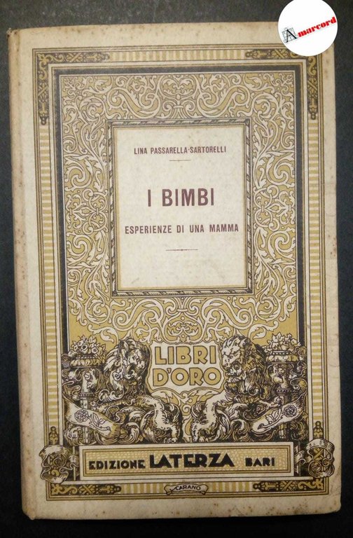 Passarella-Sartorelli Lina, I bimbi. Esperienze di una mamma., Laterza, 1932, in-8, cartonato editoriale, pp.165.