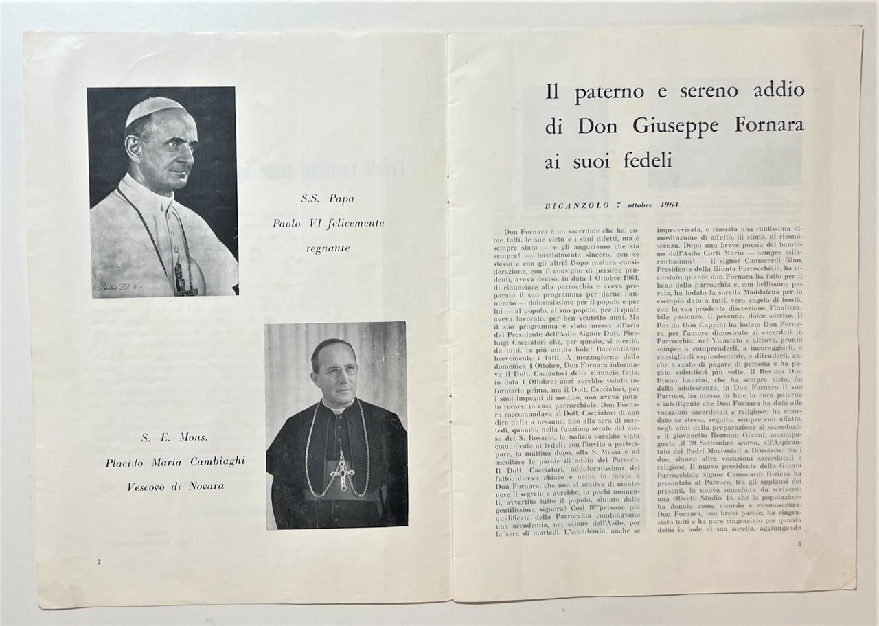 Paterno Addio di Don Giuseppe Fornara - Biganzolo, 7 Ottobre 1964