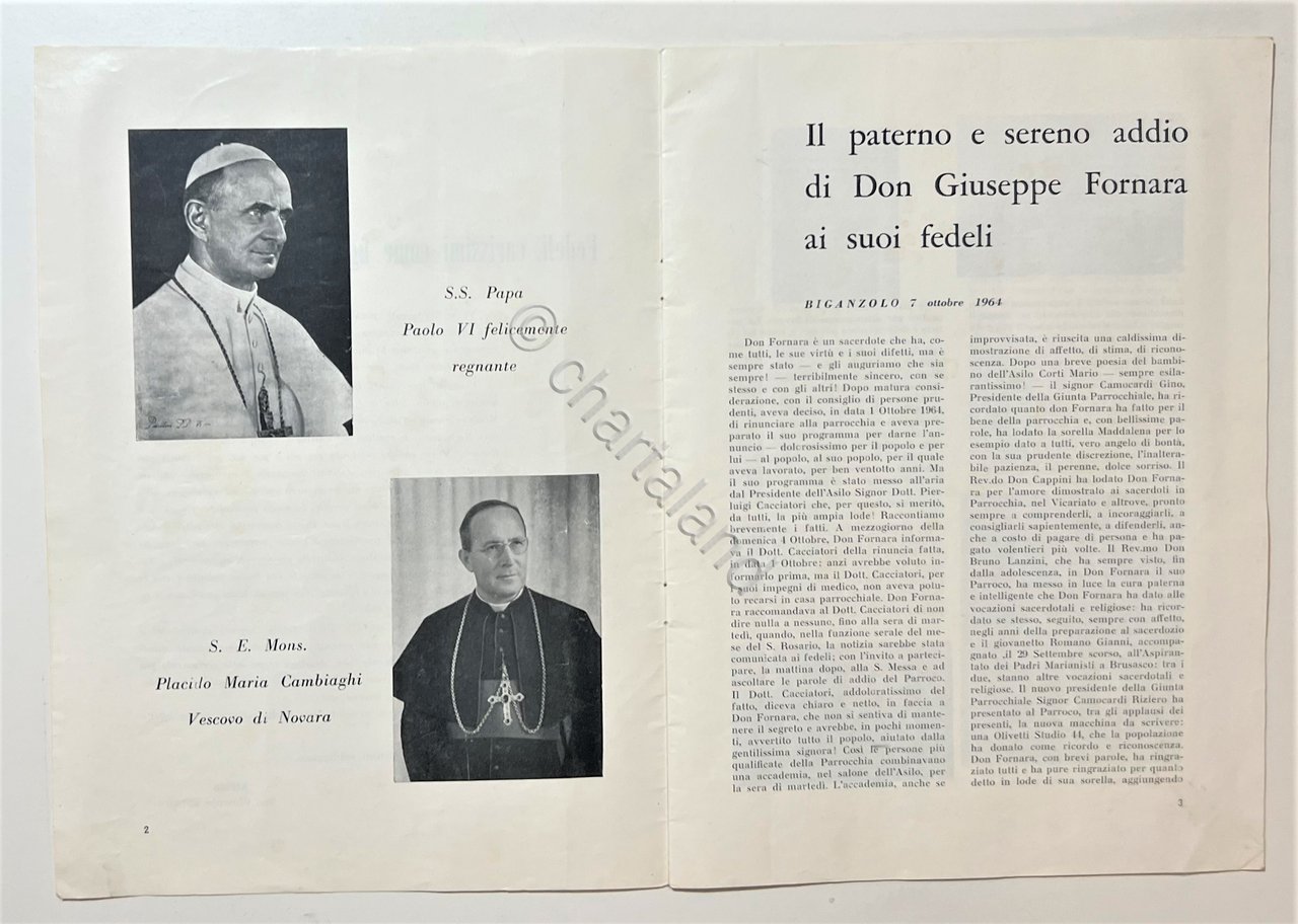 Paterno Addio di Don Giuseppe Fornara - Biganzolo, 7 Ottobre 1964 | Libri antichi e moderni |