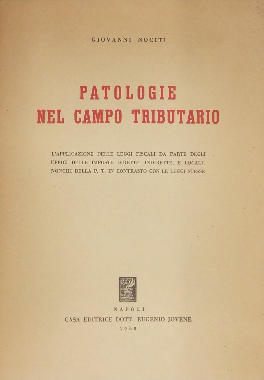 Patologie nel campo tributario. L'applicazione delle leggi fiscali da parte degli uffici delle imposte dirette indirette e locali nonché della p. t. in contrasto con le leggi stesse | Libri antichi e moderni | Nociti Giovanni