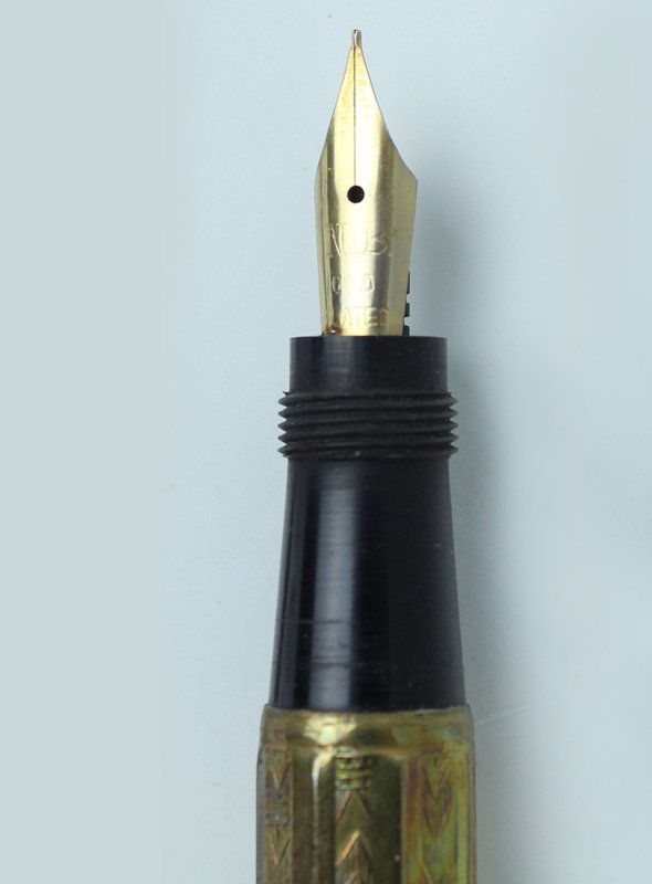 PENNA STILOGRAFICA LAMINATA PENNINO RIENTRANTE, 1920 ca. Pennino oro. Funzionante