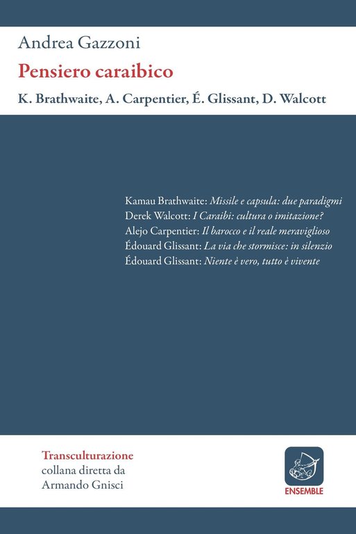 Il pensiero caraibico in cinque saggi di autori fondamentali della letteratura mondiale quali Kamau Brathwaite (Forst Medal 2015), Derek Walcott (premio Nobel 1992), Alejo Carpentier (iniziatore del Realismo Magico), Édouard Glissant (uno dei maggiori scrittori e intellettuali francesi ed europei). Un lavoro di curatela e traduzione meticoloso portato avanti da Andrea Gazzoni.