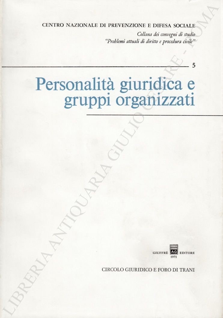 Personalità giuridica e gruppi organizzati | Libri antichi e moderni | Distaso N. - Ferrara F. - Galgano F. - Lipari N. - Minervini G., - Rescigno P. - Romano Salv. - Verrucoli P. Et Alii