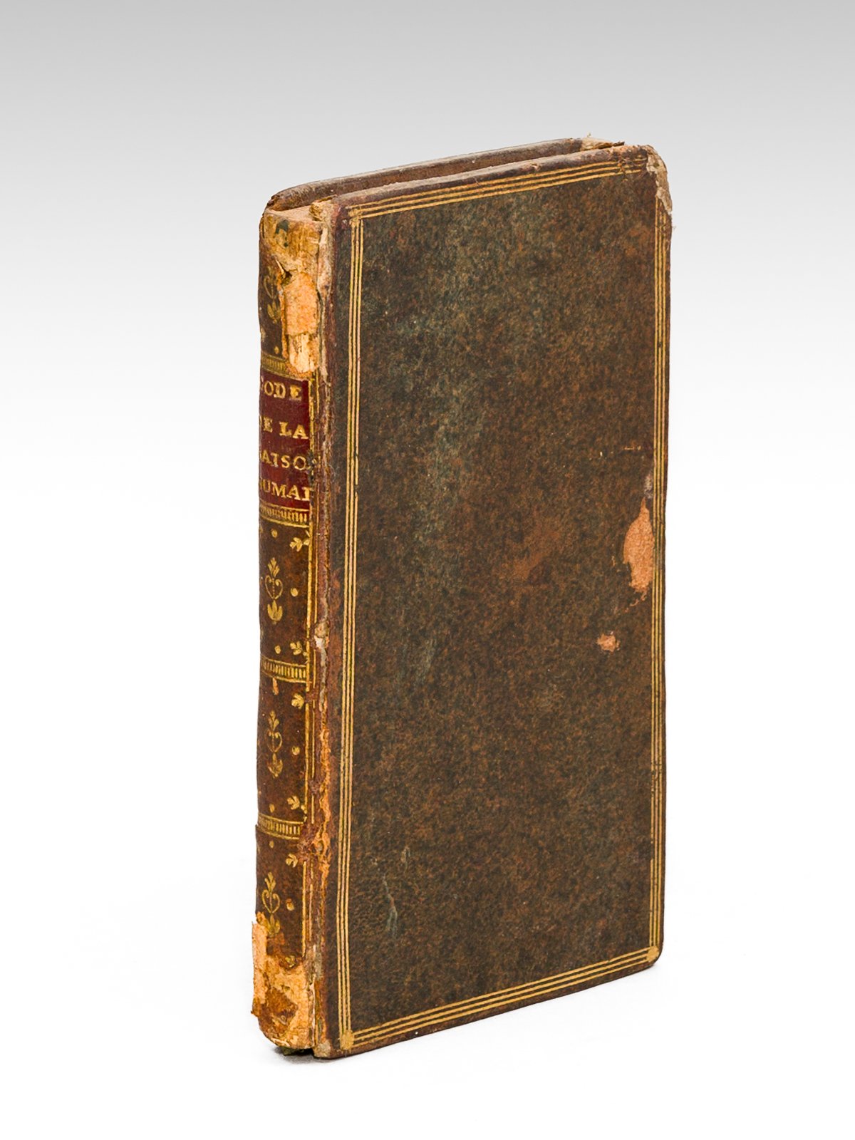1 vol. in-24 reliure de l'époque pleine basane mouchetée, s.n., s.l., 1789, [iii]-xxiv-114 pp. Ami intime de Franklin pendant la résidence de ce dernier en France, Jacques Barbeu Dubourg (1709-1779) publia les Œuvres de Franklin en 1772 et c'est en raison de leur étroite association que Franklin imprima sur ses presses le Petit Code. Il s'agit ici de la troisième édition, après celles de 1774 et de 1782. L'ouvrage est largement inspiré des théories de Benjamin Franklin, auquel l'ouvrage est dédié. "Eloge de la famille et du mariage, du travail, de la tolérance. Défense du droit de propriété et de l'impôt foncier. Idées agrariennes sur la population et l'agriculture" (INED, 218 pour l'édition de 1782). Comme toujours, l'exemplaire est mal paginé en préface (les deux premiers ff. non paginés, puis vii-ix, verso blanc, ix et verso paginé xii, xv-xxiv), avec la suppression des feuillets a1 et b1 comme dans tous les autres exemplaires. La pagination passe également de 88 à [91] sans manque, comme il est normal. On observe en revanche l'absence de remarque en bas de la page xij, à la différence des exemplaires de la British Library et de l'Université de Lausanne (qui porte la remarque "Tables", suivi d'un feuillet blanc, absent dans notre exemplaire). Etat moyen (manques de cuir en dos, coins frottés, petits mq. en plat, bon état par ailleurs, ex-libris Marjou en garde)