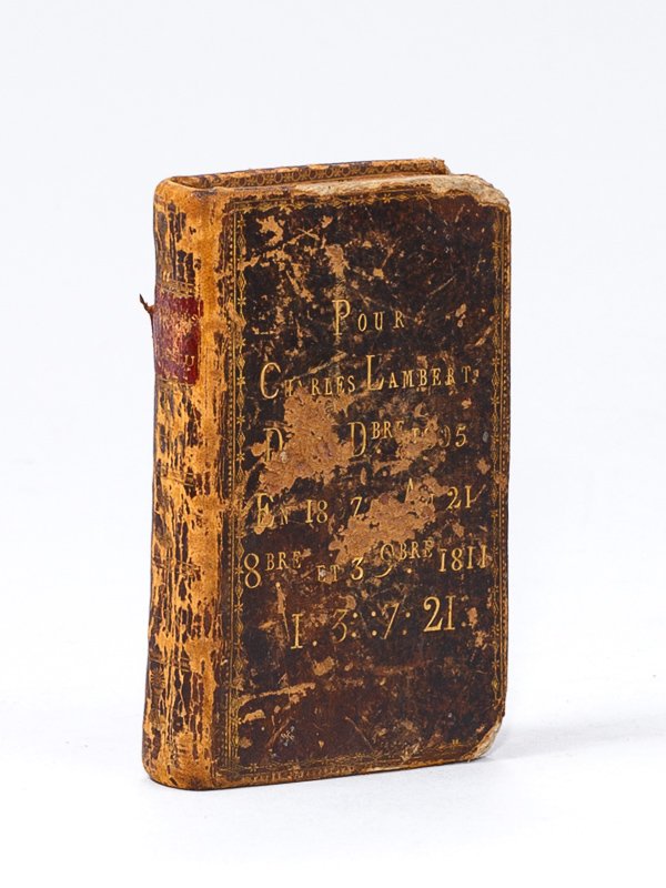 1 vol. in-18 reliure de l'époque plein veau moucheté, ex-dono gravé au premier plat : Pour Charles Lambert, Chez Belin Fils, Paris, s.d. [ 1810 ], 192 pp. Avec un ex-dono gravé quelque peu énigmatique (en partie effacé). Etat moyen (rel. fort. frottée).