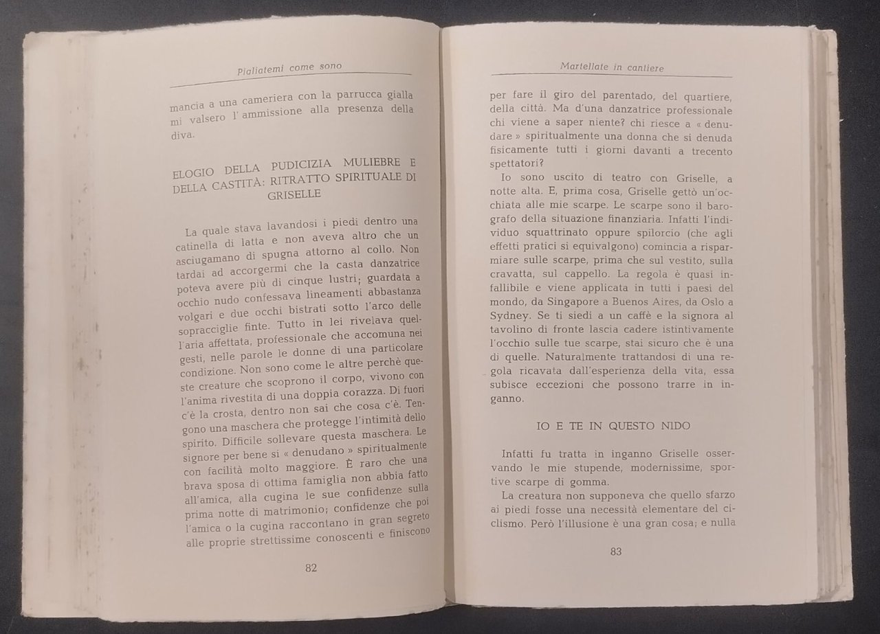 PIGLIATEMI COME SONO Autodenigrazione di un filosofo volante di Vittorio Beonio Brocchieri. Hoepli Editore, 1941 . XI, 264 pagine, 12 illustrazioni in bianco e nero nel testo. Copertina editoriale in brossura con sovraccoperta. Stato di conservazione: molto buono (pagine normalmente ingiallite, timbro privato di appartenenza, copertina un po' sciupata) Pigliatemi come sono. Autodenigrazione di un filosofo volante di Vittorio Hajime Beonio Brocchieri è un'opera autobiografica che combina elementi di ironia e riflessione filosofica. Pubblicata inizialmente nel 1941 da Hoepli, l'edizione più recente risale al 1998 per Todaro. Il libro si presenta come un racconto autobiografico che alterna esperienze personali, tra cui quelle di pilota di guerra, a meditazioni filosofiche. Il sottotitolo "Autodenigrazione di un filosofo volante" suggerisce un approccio umoristico e autoironico, tipico dello stile dell'autore. Beonio Brocchieri utilizza un tono beffardo per descrivere se stesso, mescolando avventure concrete (come quelle militari) a speculazioni intellettuali.Libro usato saggistica