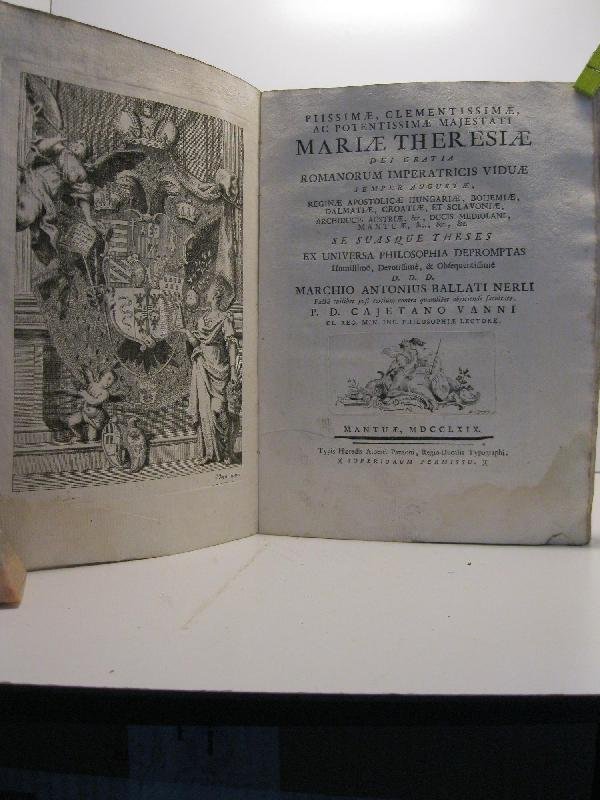 Piissimae, clementissimae ac potentissimae majestati Mariae Theresiae dei gratia romanorum imperatricis viduae semper augustae reginae apostolicae Hungariae, Bohemiae. se suasque theses ex universa philosophia depromptas. | Libri antichi e moderni | Ballati Nerli Marco Antonio