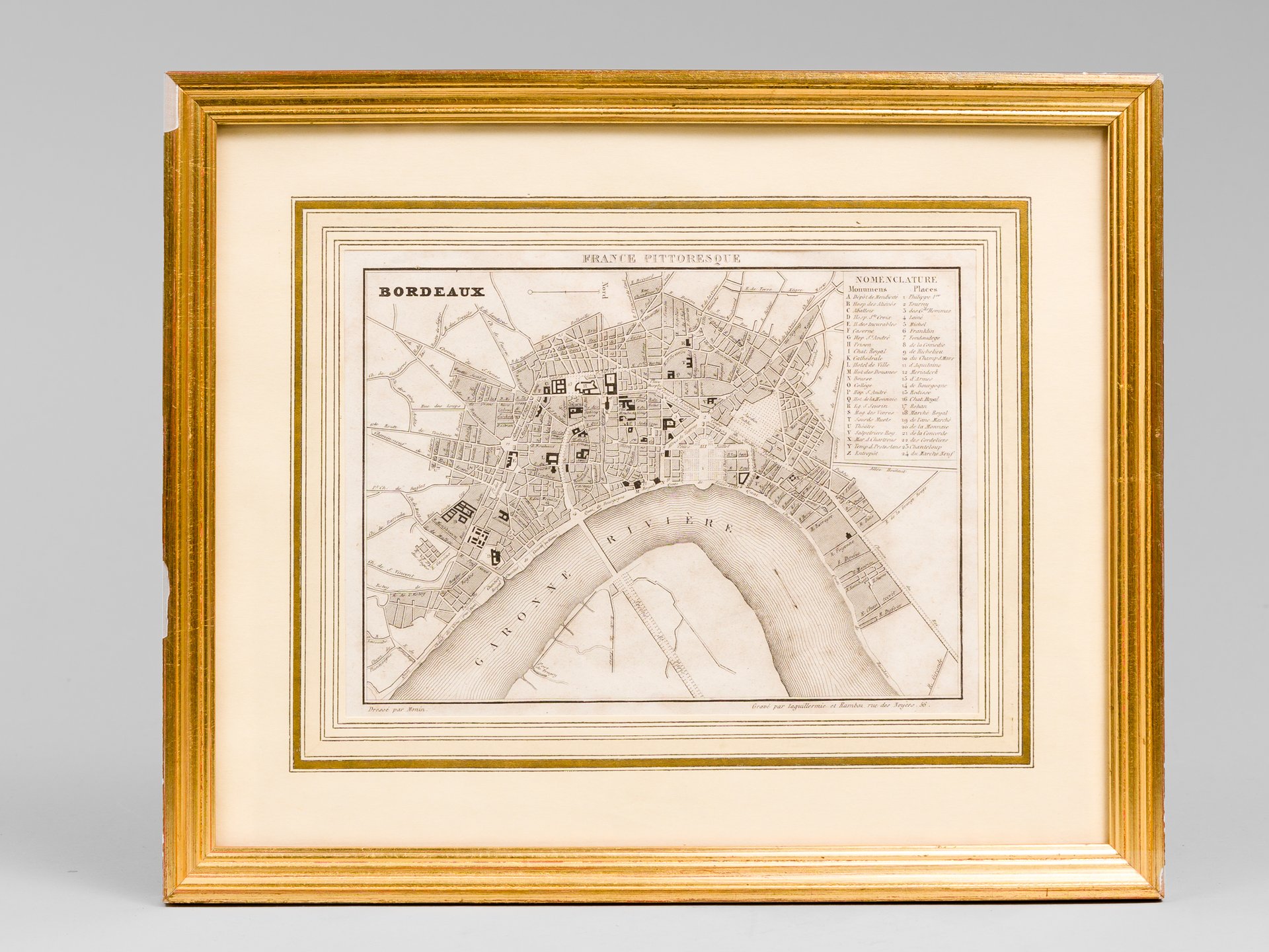 Plan de Bordeaux [ Gravure ancienne ] | Libri antichi e moderni | Monin, [ Hugo, Abel ]
