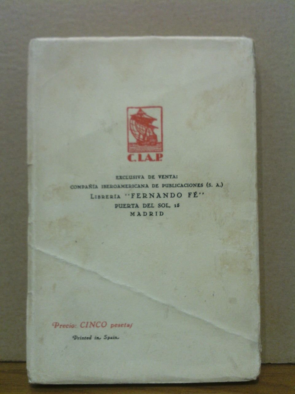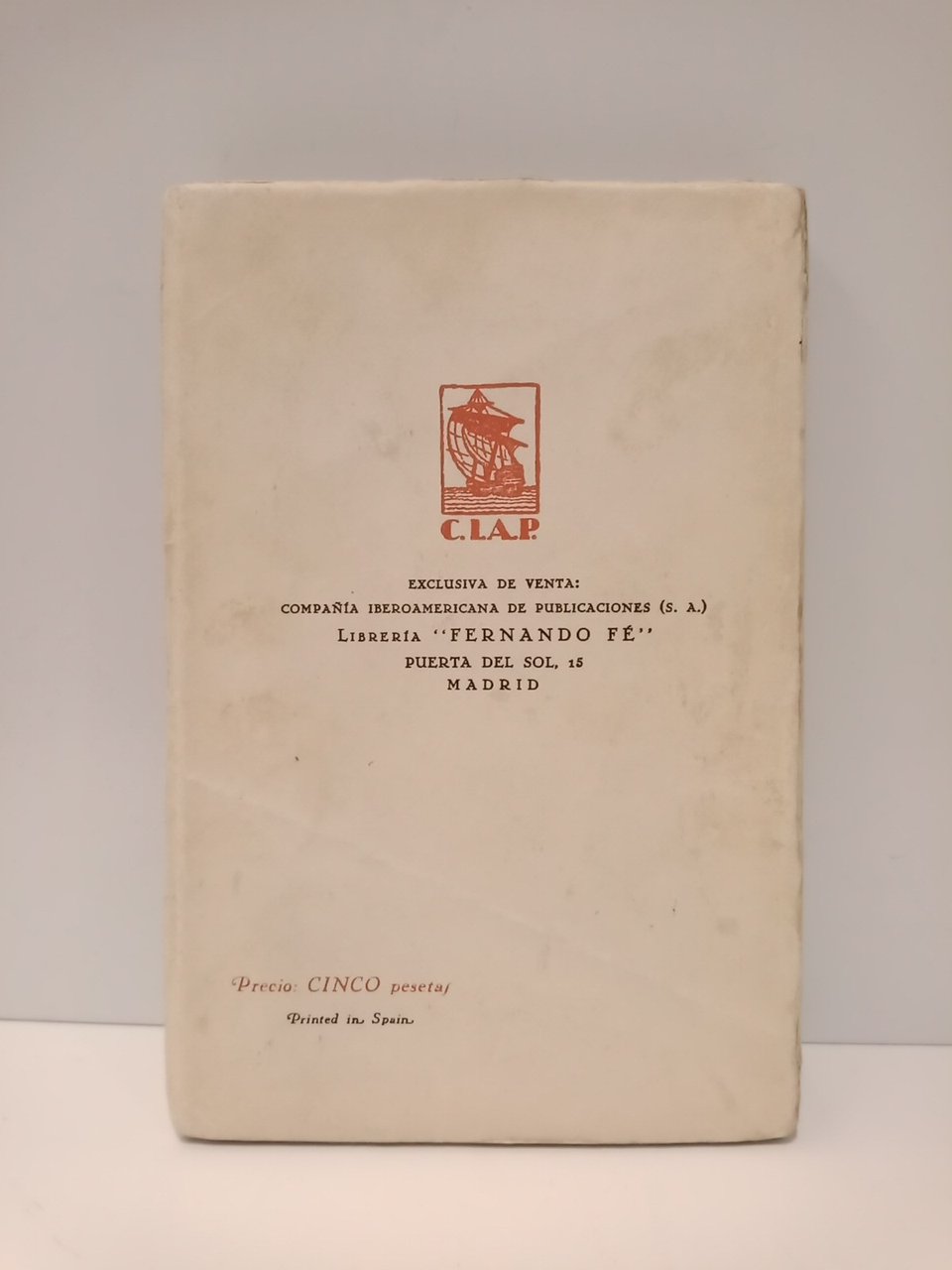 [PRIMERA EDICION].- Madrid: Eds. Ulises, Cia. Iberoamericana de Publicaciones, 1931.- 171 p. + [16 h.] de catálogo editorial + 2 en blanco; 8º (19 x 13 cm); Rústica Ed. ilustrada.- Parcialmente intonso, con muchos pliegos sin abrir, conservando todas sus barbas.* Lomo algo deslucido, marca de doblez en la cubierta posterior y pequeña mancha de humedad en el margen inferior interno de las primeras 82 páginas, en disminución. Dicho esto, que es preceptivo, el ejemplar está completo y presenta buen aspecto. LITERATURA Y FILOSOFÍA ESPAÑOLAS DE LOS SIGLOS XIX-XXI Y SU HISTORIA EN GENERAL