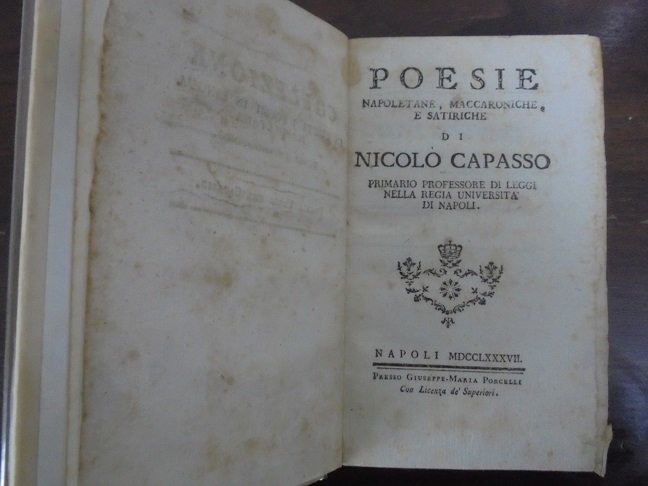 POESIE NAPOLETANE Collezione di tutti i poemi in lingua napoletana. Tomo decimoquinto. Parte della Illiade di Omero tradotta in lingua napoletana, segue leg. assieme Poesie maccaroniche e satiriche.