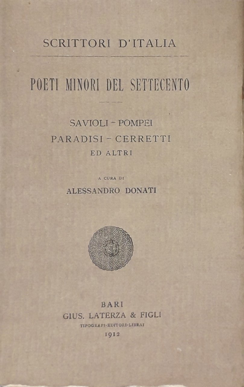 Poeti minori del Settecento. Savioli. Pompei. Paradisi. Cerretti ed altri. A cura di Alessandro Donati | Libri antichi e moderni | Donati Alessandro (A C. Di), Donati Alessandro
