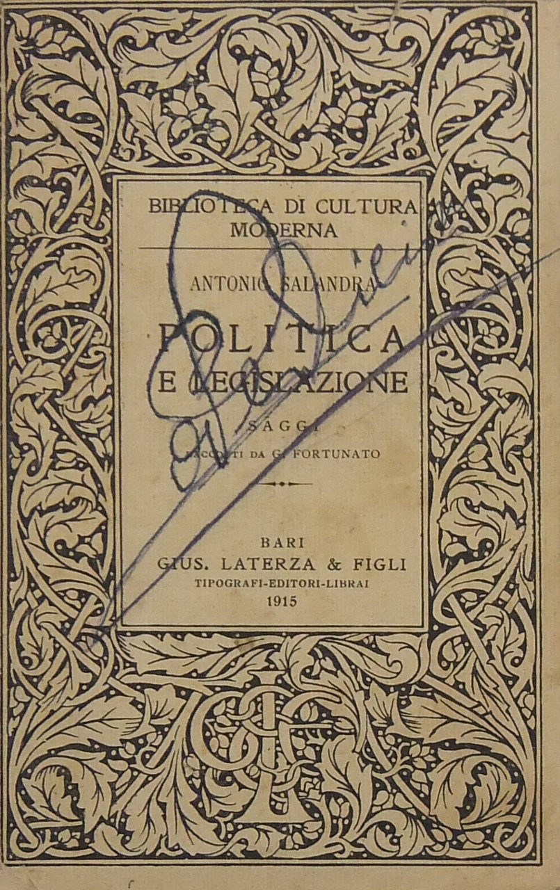 Politica e legislazione. Saggi raccolti da G. Fortunato | Libri antichi e moderni | Salandra Antonio (1853-1931)