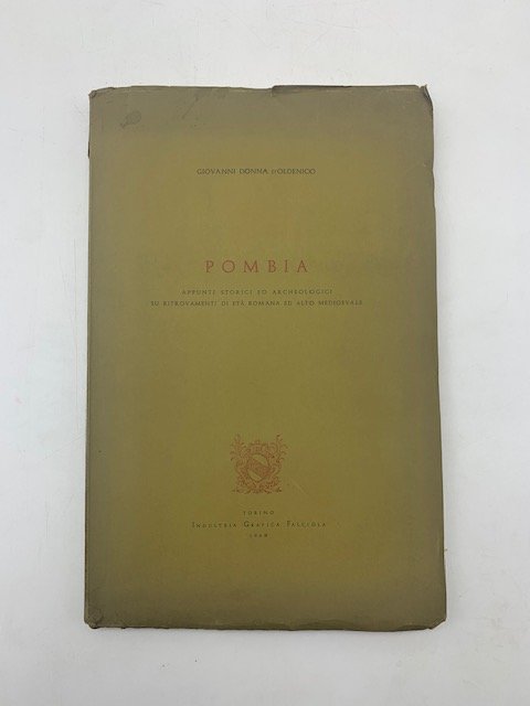 In 4 (cm 18 x 28,5), pp. 63 + (5) con tavole con riproduzioni fotografiche in bianco/nero su carta patinata, 2 piantine fuori testo piu' volte ripiegate. Pagine intonse. Brossura editoriale con lievi taglietti al margine superiore del piatto anteriore. Monografia dedicata ai ritrovamenti archeologici di eta' diversa presso Pombia (Novara). Argomenti: Eta' romana; Colonna della Chiesa di S. Marino; Ninfeo; Eta' alto medioevale. L'antichita' della chiesa di Pombia; Il nartece funerario di Liudolfo; Relazioni di visite pastorali del 1595 e del 1617 alle chiese di S. Vincenzo in Castro e di Santa Maria della Pila.